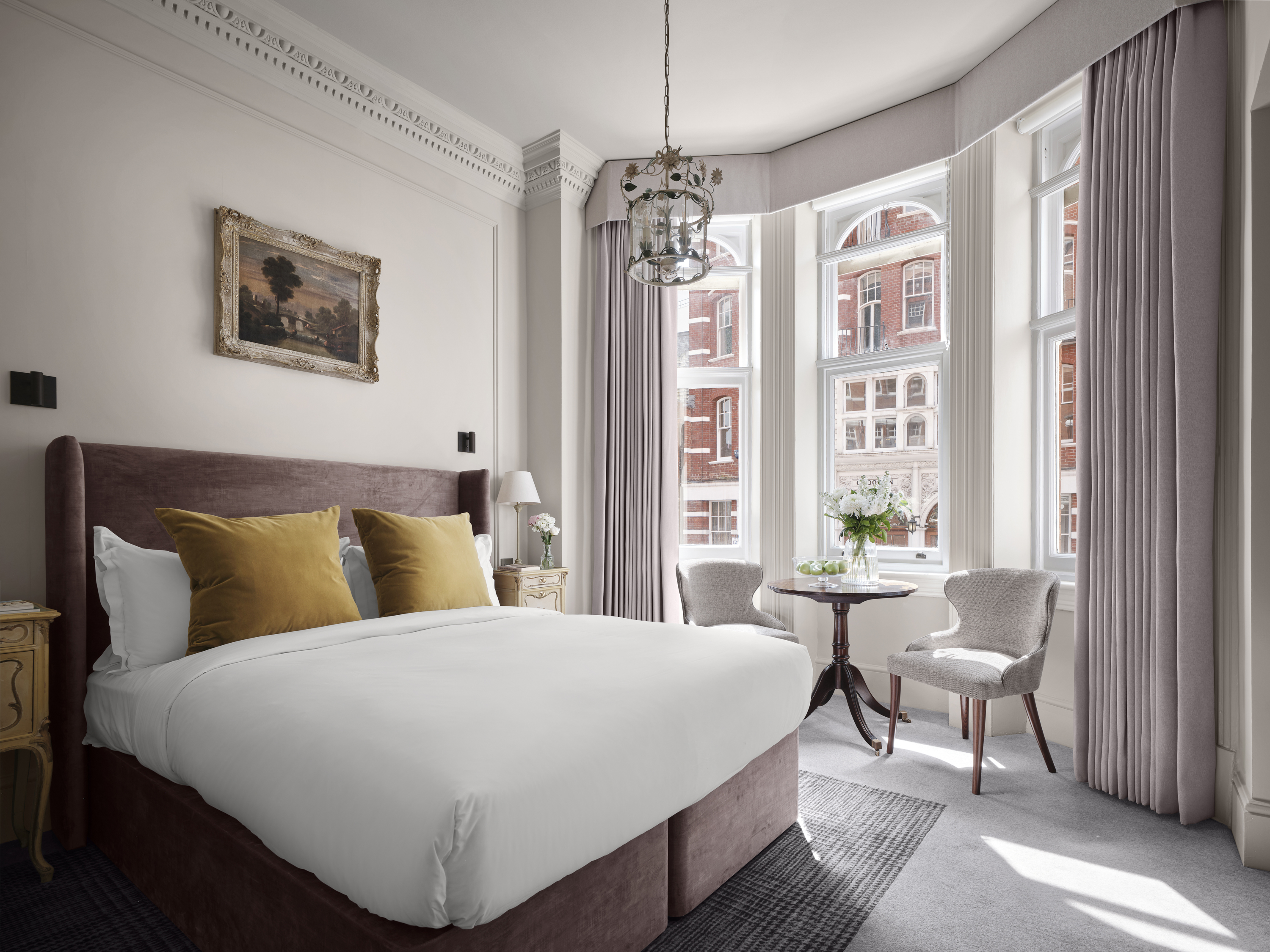 Each room is decked out in luxurious contemporary materials, with plush upholstered queen-size beds in crisp white linen and rich textures. Beautiful details like original cornicing and vintage furniture preserve the heritage flair.